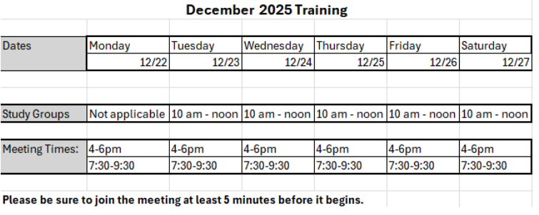 1. All trainees will watch the messages at the scheduled times by joining the Zoom meeting.